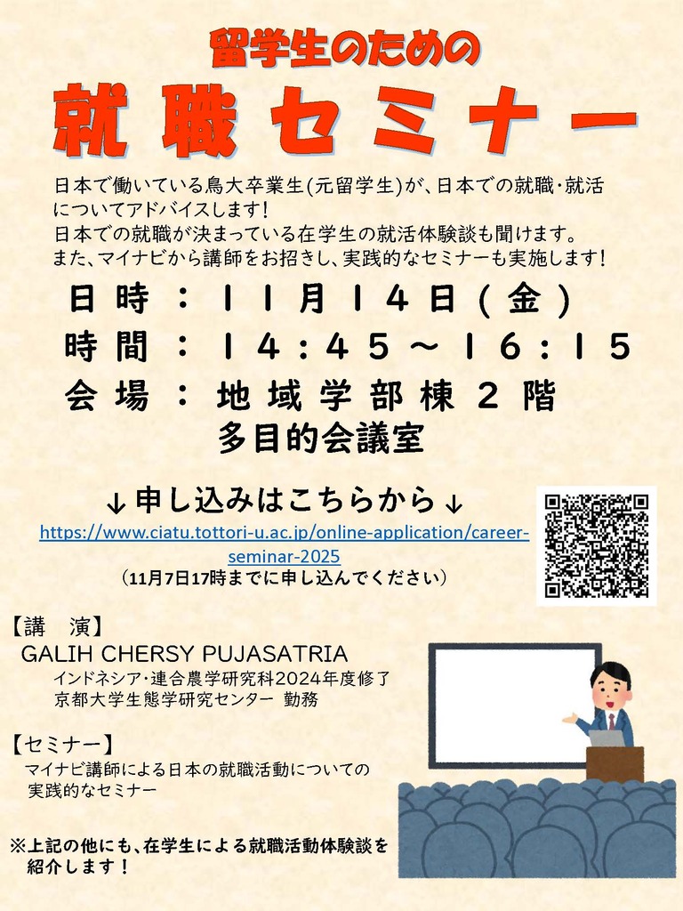 【申 込】https://www.ciatu.tottori-u.ac.jp/online-application/career-seminar-2025