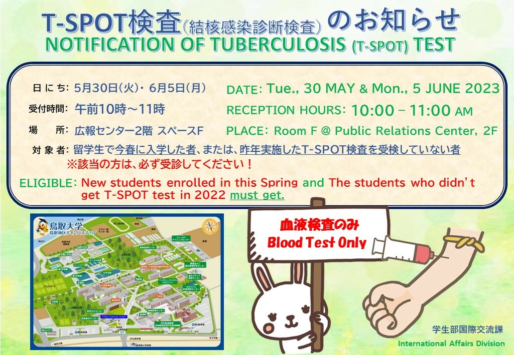 T-SPOT検査(血液検査のみ)を実施します。