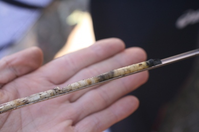 成長錐で樹のコアを採取! |